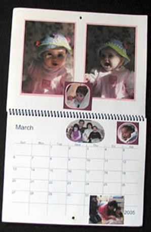 · Printed one month per page, single-sided · Each page is a full 8.5x11” sheet of bright white heavyweight cardstock · The front cover is blank on both sides . · Each page easily accommodates several 4x6 photos along with mats or accents. See samples of decorated calendars to see a few illustrations of what might work. · The area on the back of the previous month's page above it is blank and undecorated, ready for your creativity. · The calendar comes with a drilled hole so that it can be hung on a wall. · When opened flat, the decorated top and printed calendar bottom measure approximately 11x17".